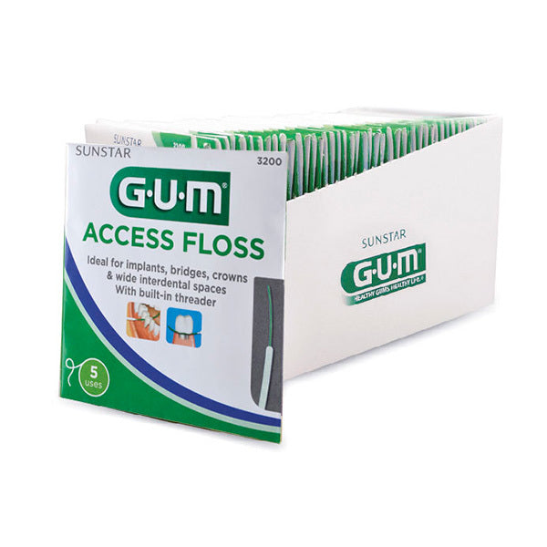 Il filo interdentale GUM ACCESS è molto facile da usare, grazie a un infila-filo integrato che ne facilita l'inserimento in aree strette e difficili da raggiungere.