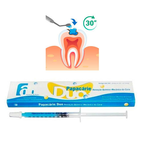 Evita l’anestesia, limita l’uso delle frese. La rimozione della carie con Papacárie® è più rapida e molto meno invasiva rispetto ai metodi convenzionali.