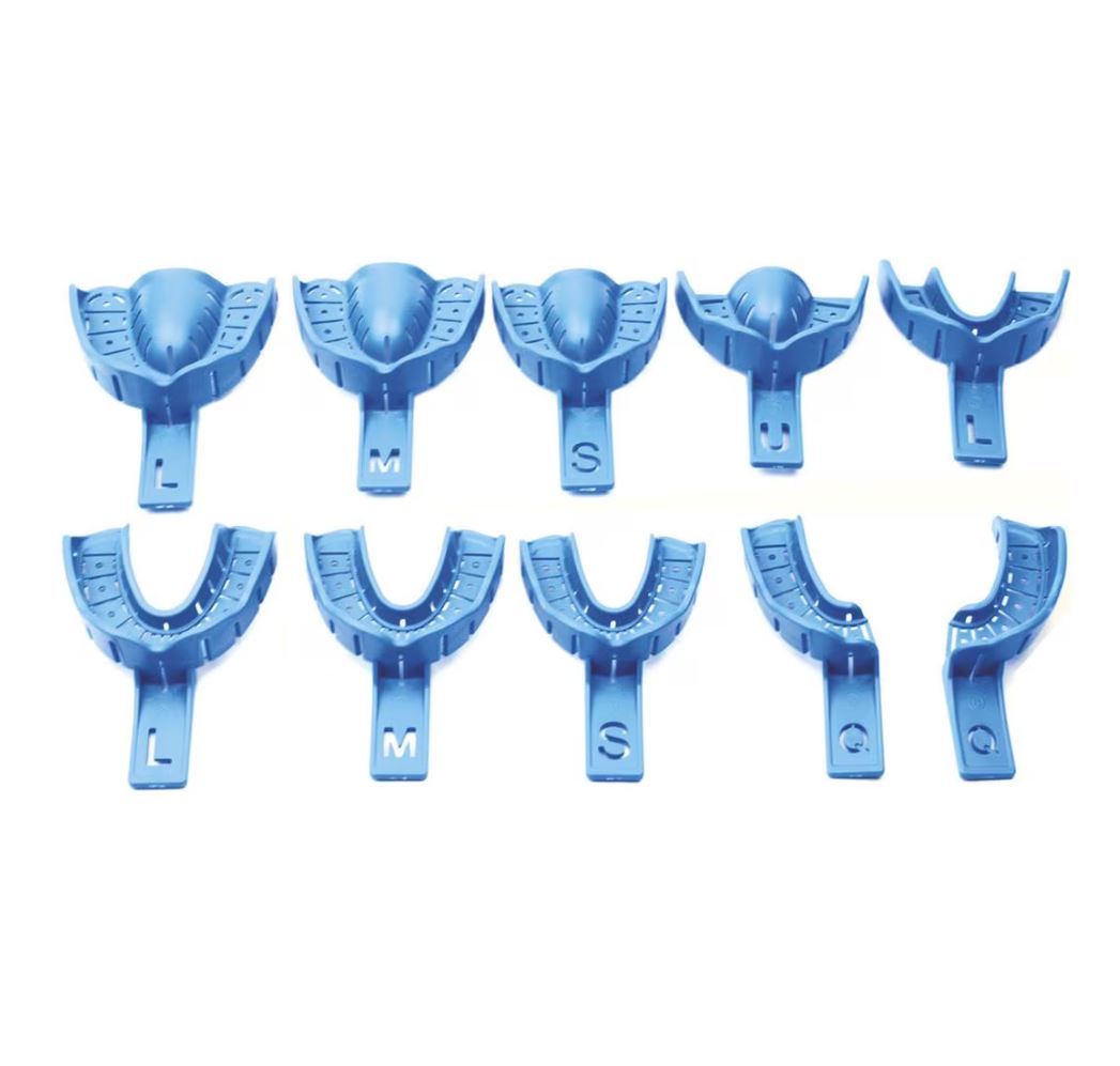 Portaimpronte in plastica rigida forate, con pareti e bordini molto ritentivi, ideali anche per impronte su impianti.